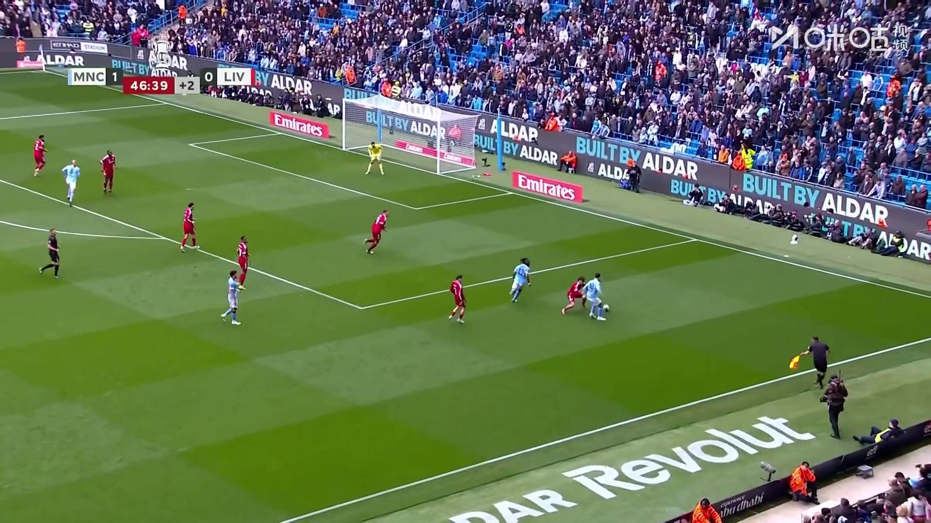 哈兰德头球破门上演梅开二度曼城2-0领先利物浦
