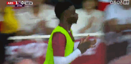 第28分钟,萨卡在场边热身,球迷送上掌声