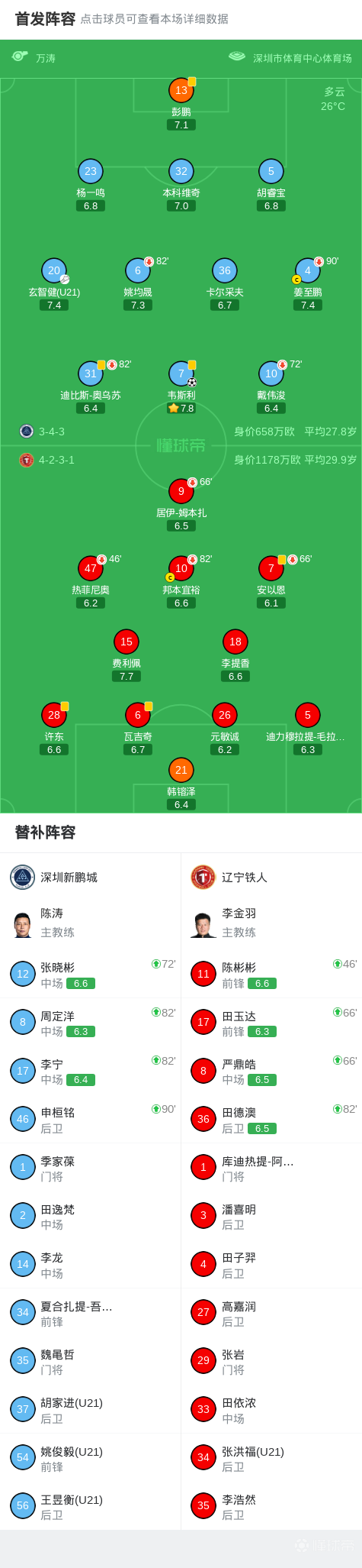 北京时间4月26日19:00,中超第8轮继续进行,深圳新鹏城坐镇深圳市体育中心体育场迎战辽宁铁人,本场主裁判为万涛,VAR裁判为何鑫。上半场,玄智健助攻韦斯利闪击,瓦吉奇头球解围险些自摆乌龙。下半场,邦本宜裕单刀破门越位无效。最终,新鹏城主场1-0铁人,终结三连败的同时送对方三连败。
