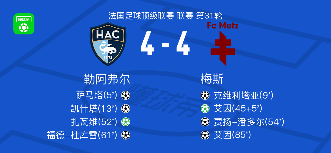 勒阿弗尔4-4梅斯,萨马塔破僵,艾因扳平比分