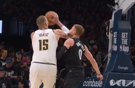 约基奇用肘部将迪文琴佐击倒,裁判回看后改判后者防守犯规