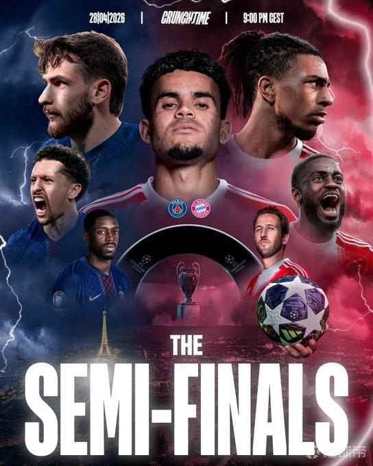 拜仁官方晒AI制作对阵巴黎海报:迪亚斯C位,KK、奥利塞出镜